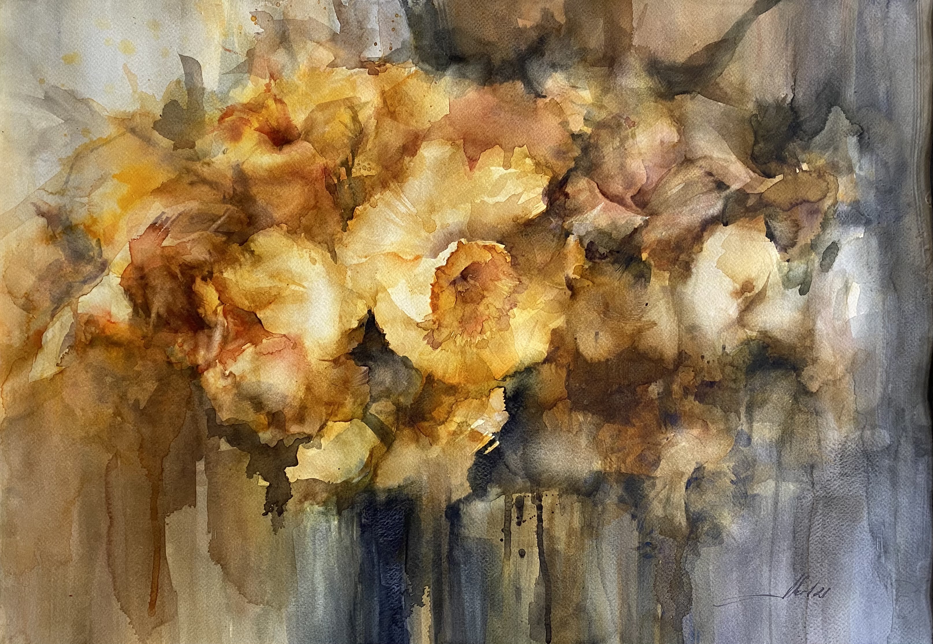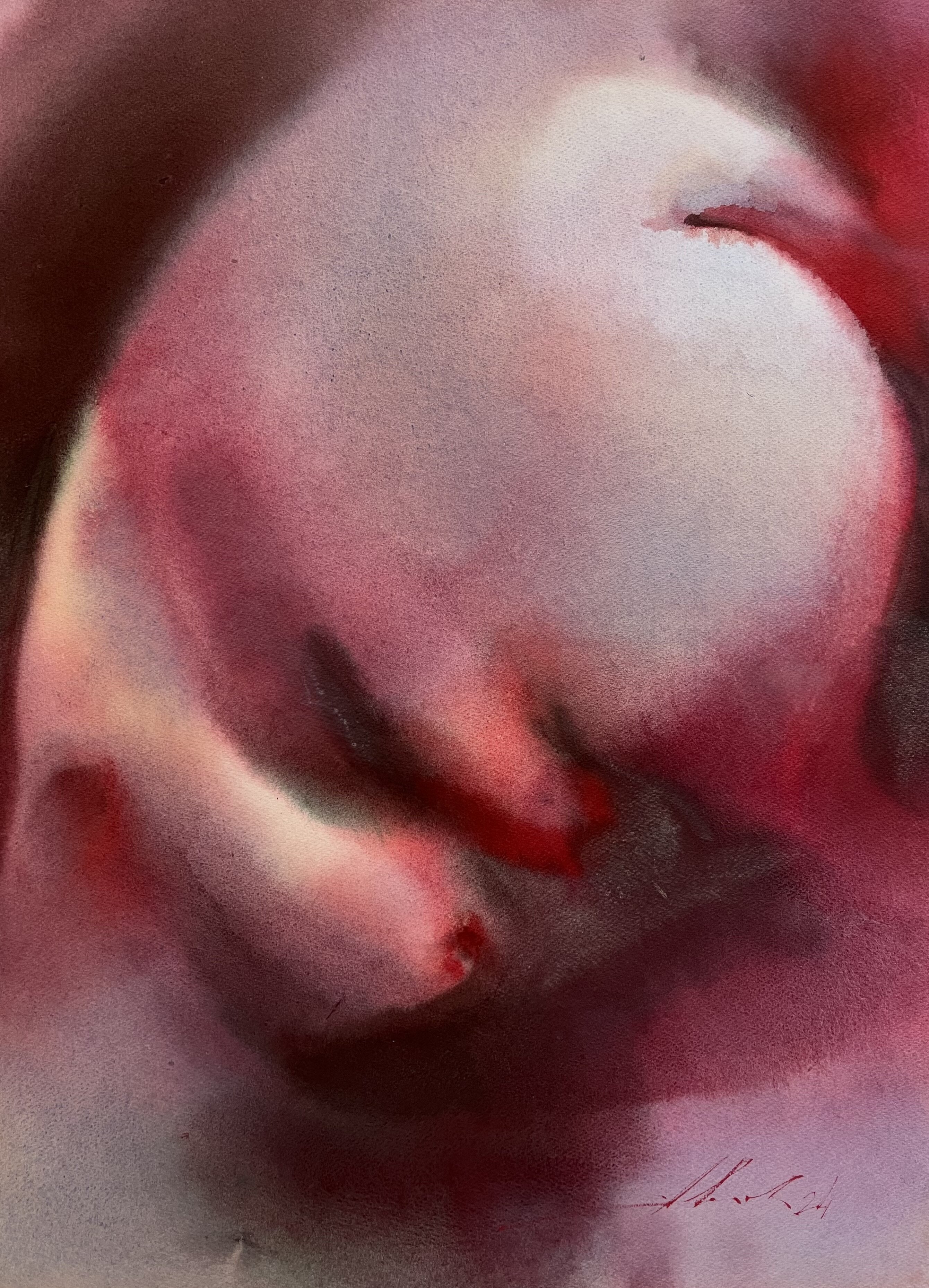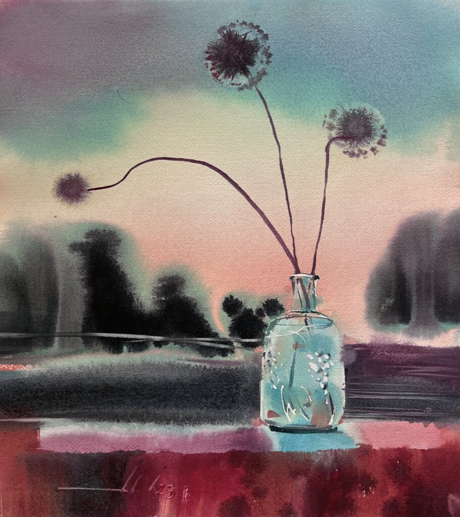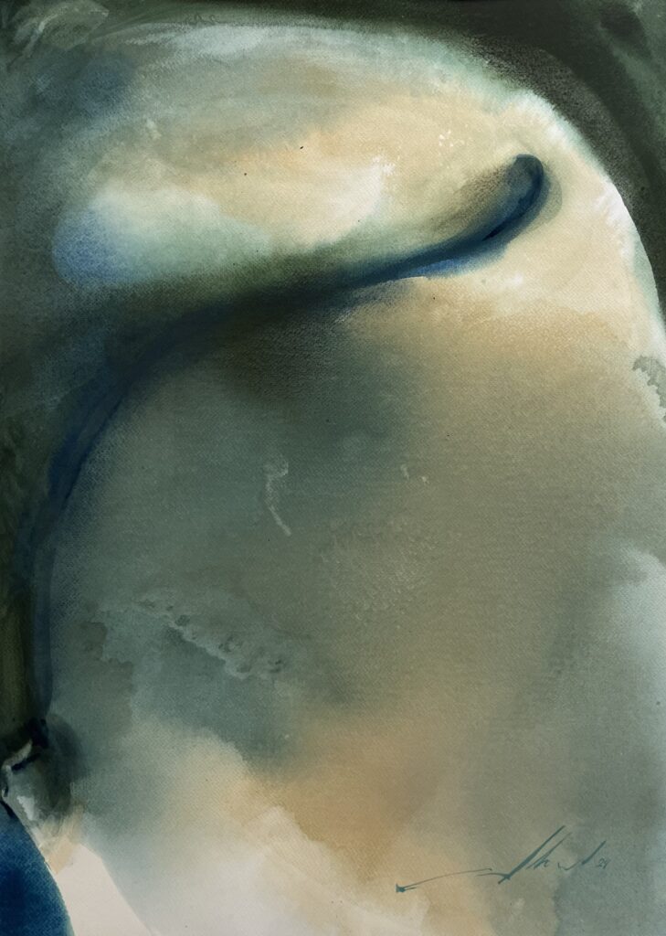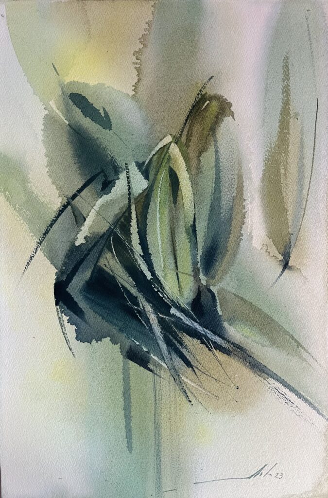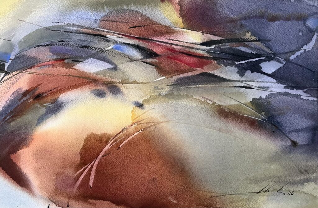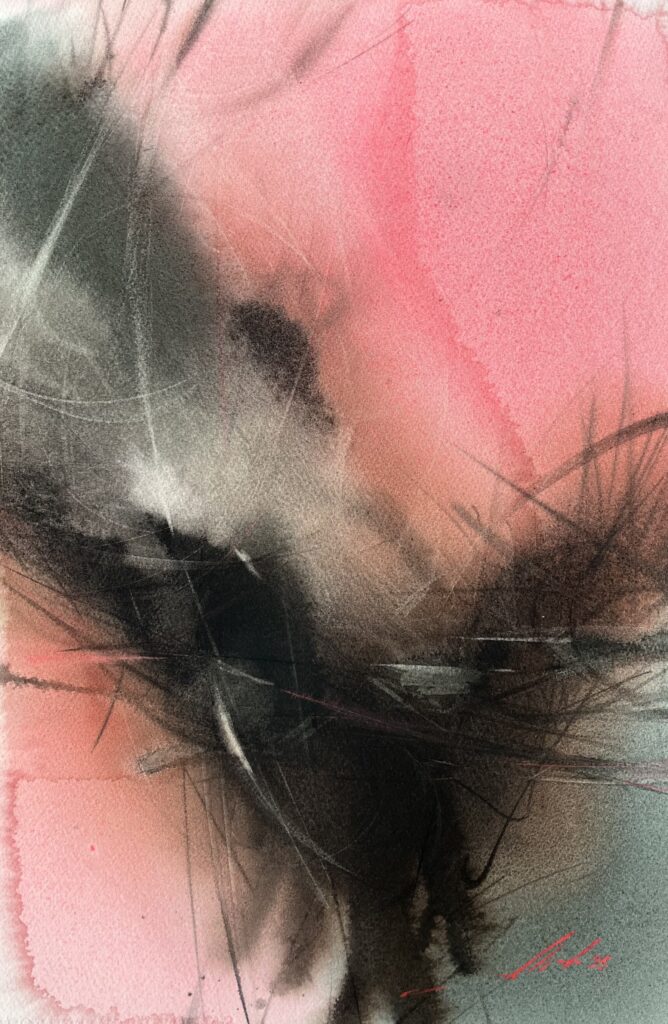 From 2013 to 2020, Averianova deepened her expertise through intensive study with Vladimir Rynkevich, a celebrated Belarusian watercolorist known for his command of the medium’s fluidity and unpredictability. Under his mentorship in Minsk, she honed her technical skills, learning to harness watercolor’s inherent spontaneity to convey complex emotional and thematic narratives. This period was crucial in shaping her ability to merge abstract expressionist techniques with symbolic content, resulting in works that invite viewers into layered interpretive experiences.