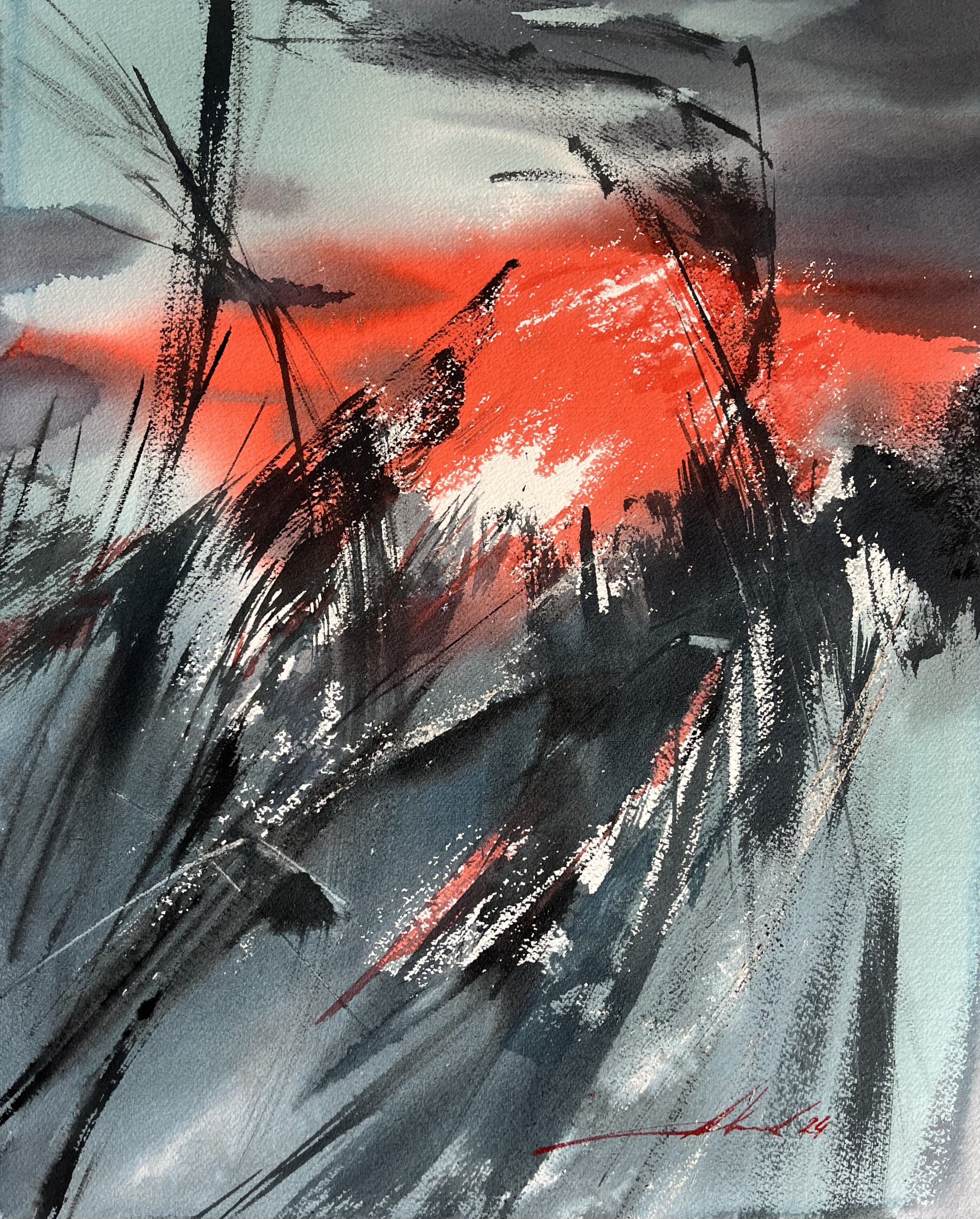 A Contemporary Watercolor Artist Blending Abstract Expressionism and Conceptual Symbolism